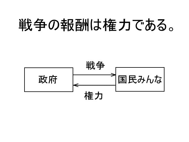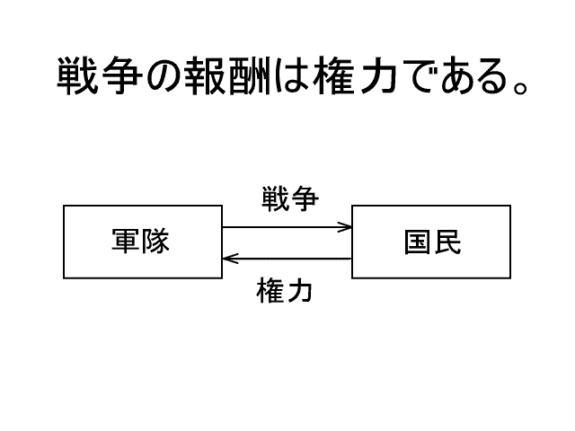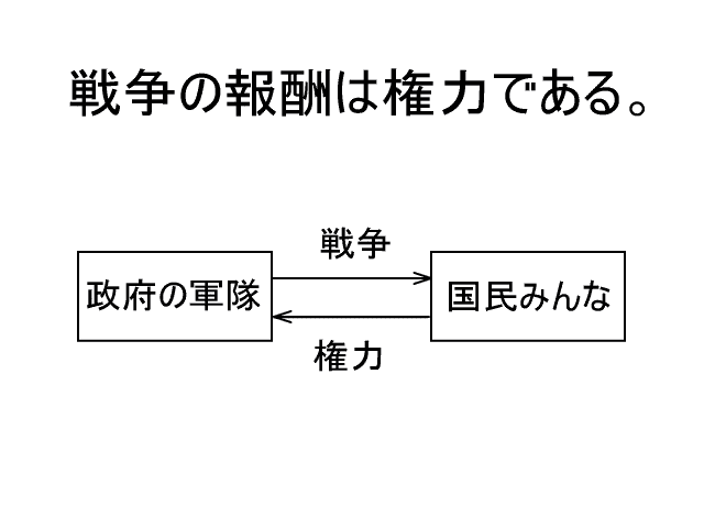 戦争の時代には『軍隊の報酬が権力である』ことによって政府が外国と戦って権力が得られる。国民みんなが政府に従わねばならない。それは、ヨーロッパでも日本でも同じである。