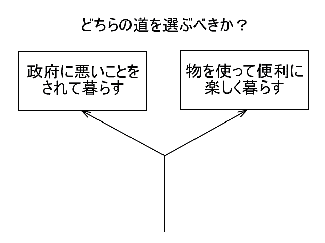 政府は国民を幸福にするために仕事で国民に悪いことをしていないふりをして悪いことをしているのだから、国民が政府に悪いことをしていないふりをして悪いことをしてもらうかどうかは国民個人の自由である。国民は自分が政府に悪いことをしていないふりをして悪いことをされるのが好きなら政府の言うことを聞いて政府に悪いことをしていないふりをして悪いことをしてもらえばいい。反対に、国民は自分が政府に悪いことをしていないふりをして悪いことをされるのが嫌なら政府の言うことを聞かず政府に悪いことをしていないふりをして悪いことをされるのを断ればいい。