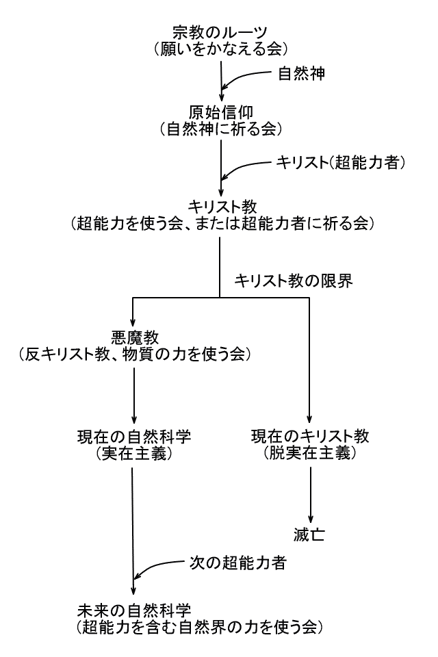 したがって、超能力者が実在についての正しい認識を持っていない場合には、他の人間は超能力者に従う必要はないから、超能力者に他の人間が無条件に絶対的に従わねばならないとする宗教は成り立たないのである。