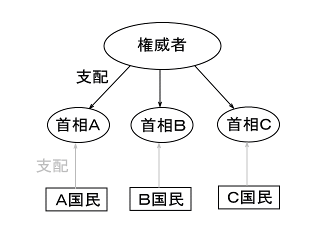 例えば、戦争は天皇や総統の意思によって始められるが、国民みんながいやいやなので遅かれ早かれ戦争は止[や]まる。実際に戦争が延々と続いて社会が発展したためしがない。