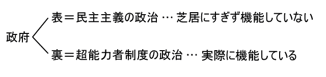 政府は裏で超能力者制度をやっているのに、表では民主主義の政治をやっているふりをして国民を騙して国民から税金を取っている。