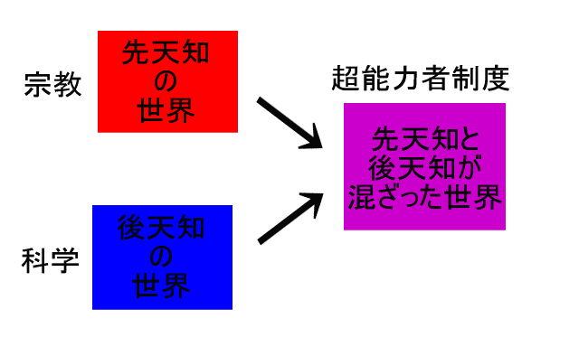 この世に本当に全知全能の神が現れるとすれば、政府が急に神制度をやめて超能力者制度を始めるわけがないから、もともと神がいないこともわかった。つまり、政府がこれまでにやっていた神制度も嘘だったのである。[もしも、本当に全知全能の神がいたのなら、いくら科学や哲学サイドから文句を言ってきても、政府は取り合わずにこれまでと同じように神制度を続けたらいい。だから、政府が神制度をやめたのは、全知全能の神がいなかったからだと考えられる。]