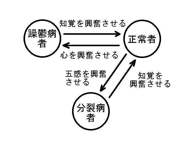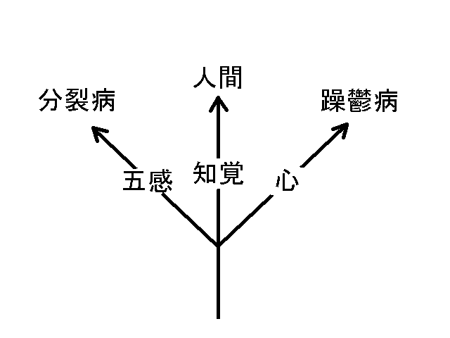 分裂病者本人は『五感界の愉快な面だけを肯定したい』のだが、その副作用として不快な幻聴が聞こえるのだ。