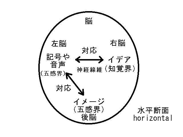 脳細胞の周りにある超時空間(アインシュタインが大統一理論を考えるときに考え出したような、4次元時空間を拡張した概念)が脳細胞が神経興奮したとき歪むことによって感覚が生じるのだ。しかも、その超時空間の歪みが量子化されている(つまり、歪みの程度がとびとびになっている)ので、ビジュアル的に粒子化して感覚子というものを考えるのだ。つまり、歪みの程度が量子化されているから個数が数えられる粒子に喩えただけであって、なにも形が粒子すなわち点であるわけではない。もっとも、感覚子の‘位置’を測定しようとすると、それは点として観測されるので、あたかも粒子であるかのように見えるが、本当は空間的に広がった超時空間の歪みそのものなのだ。(ただ、超時空間の歪みを数式で書くことは難しいので、現在のところはそれぞれの素粒子として別々に考察しているのだ。質点すなわち質量を持った素粒子は重力場すなわち4次元時空間の歪みそのものだから、質点があることと4次元時空間が歪んでいることとは同値なので、4次元時空間の歪みが激しいところではその真ん中に地球のような物質が現れることになるのだ。あるいは、4次元時空間が球対称に歪んでいるとその中心(特異点)に質点が現れる。つまり、質点(質量を持った粒子)とは4次元時空間の特異点(湧き出しまたは吸い込み口)にほかならない。質点の実体はその質点の周りの4次元時空間の歪みなのだ。一般に、超時空間がさまざまに歪みあって、この宇宙のすべての物質が作り出されているのだ。)